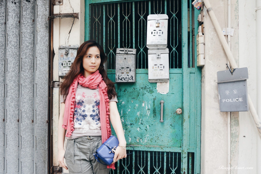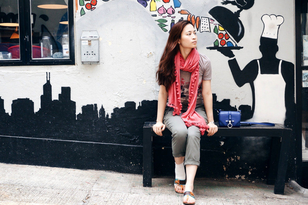 Sprained my ankle a few weeks back, leaving me with period of flat shoes only. Yet, it can’t stop me from outfit styling and ootd (outfit of the day) shooting. It was a beautiful casual Sunday, we went to Tai Ping Shan Street at Sheung Wan. Love this area with stylish cafes, petite shops and galleries. Good place to spend a relaxing afternoon there.