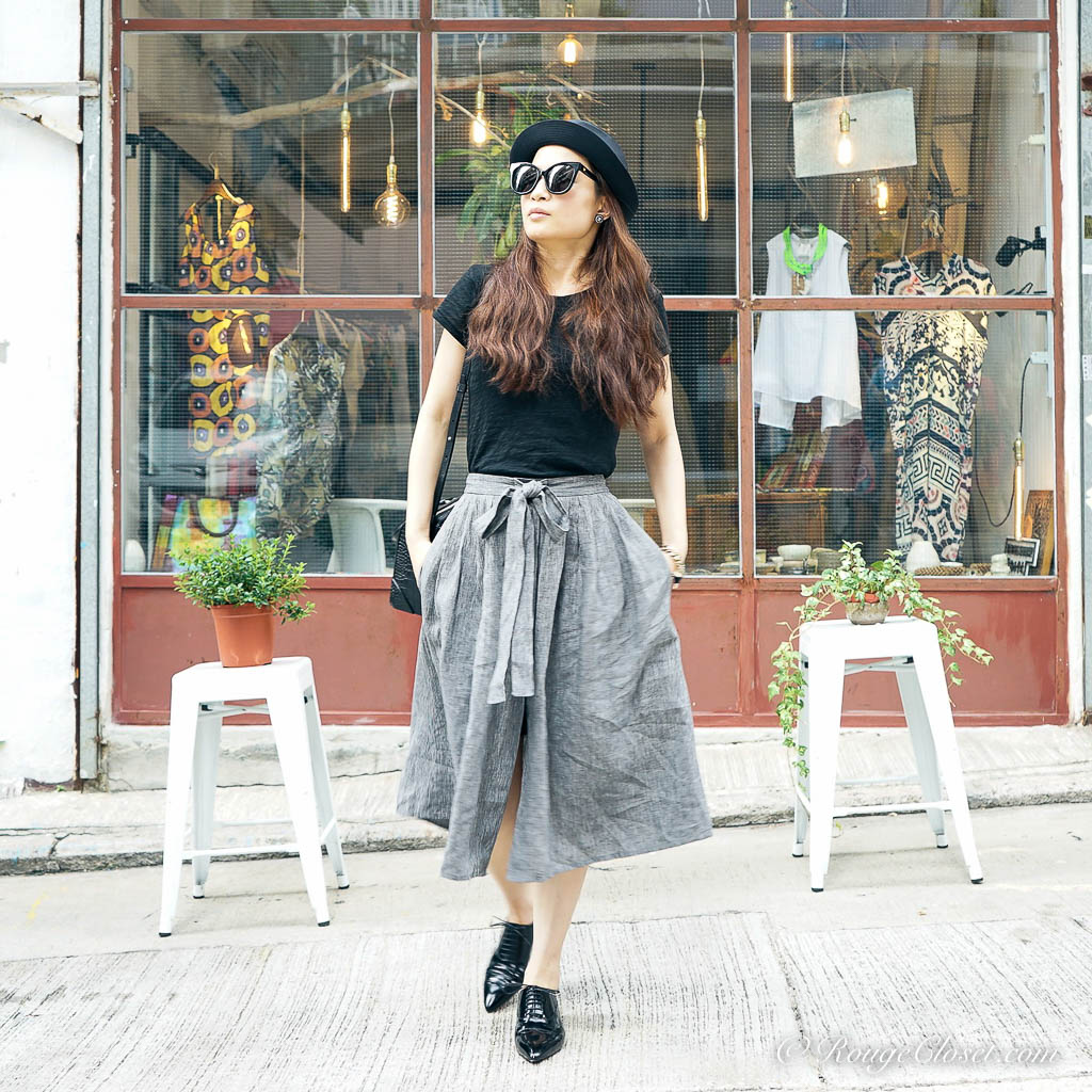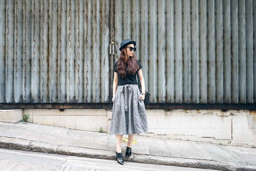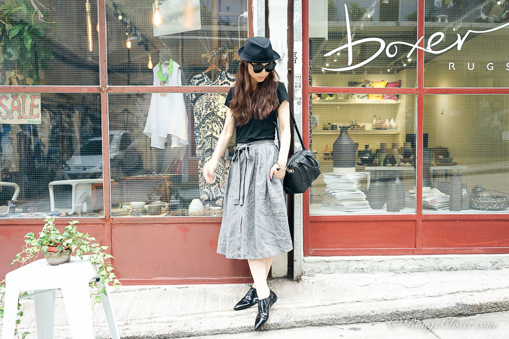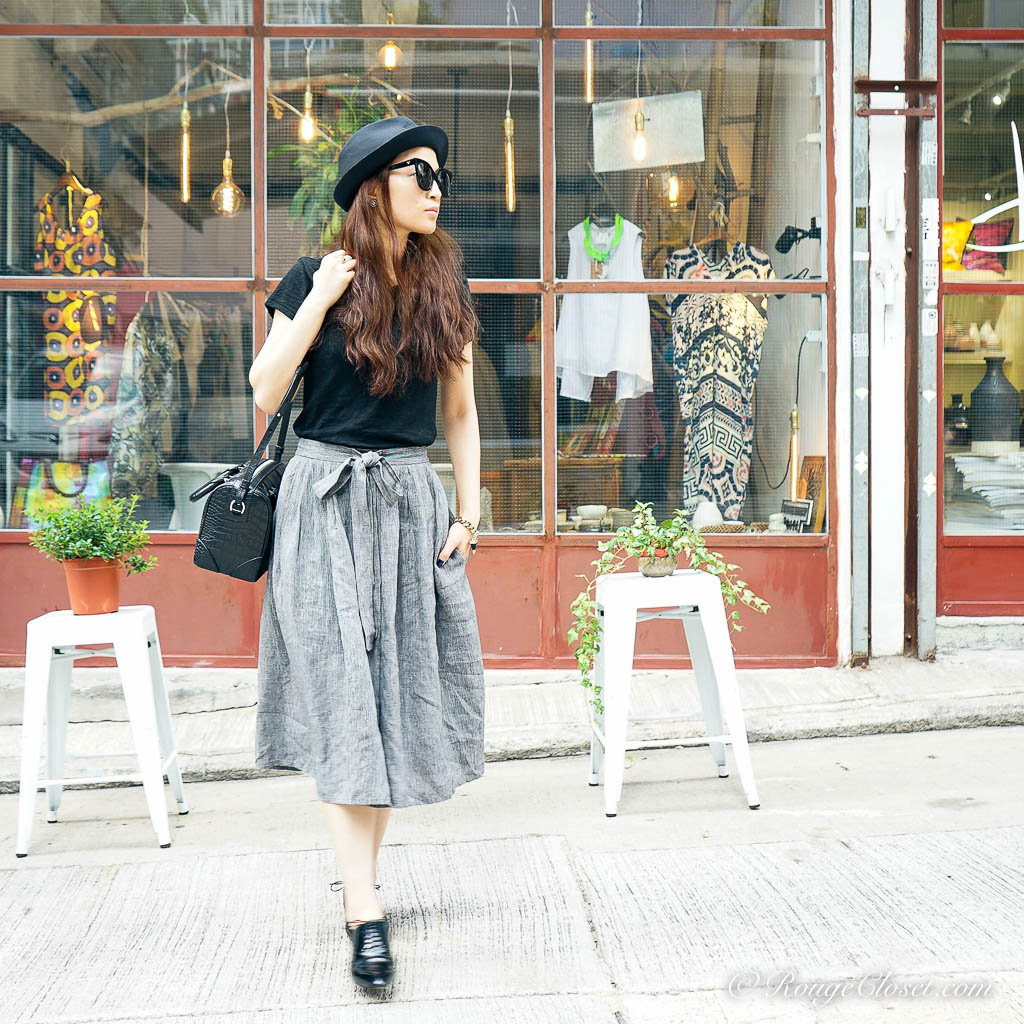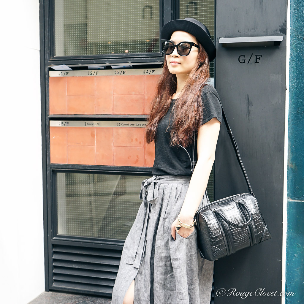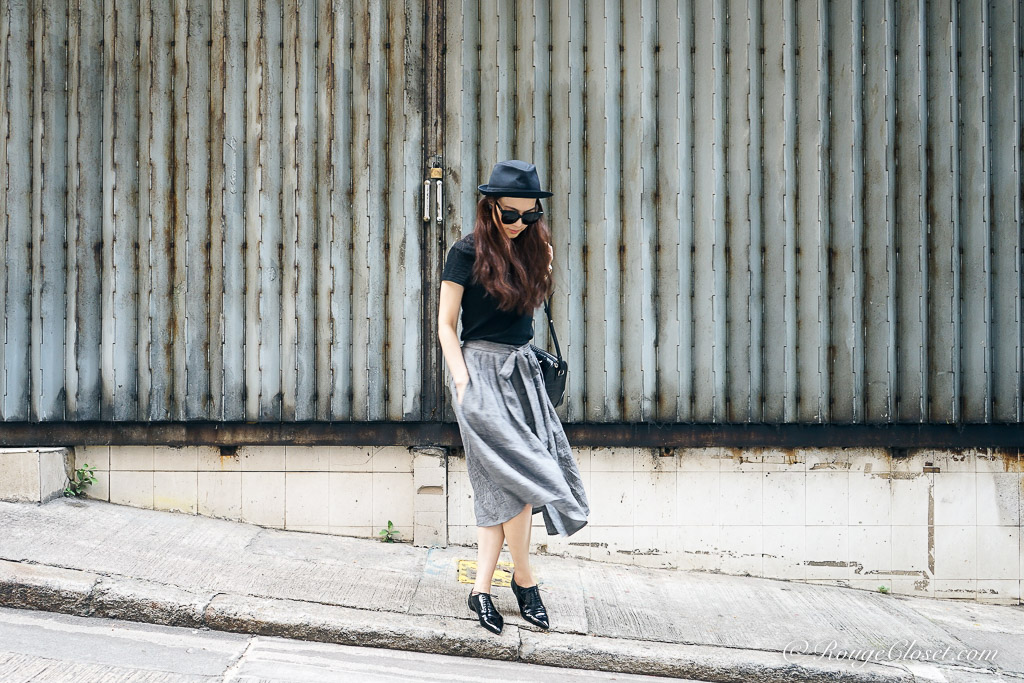 In the past, I tried to avoid midi skirt. The length of a midi is a bit embarrassed, it’s not as long as a maxi to elongate your body line and neither as short as a mini to feature your legs and your curve. It’s easy to make you look short. However, if you can manage your proportion, a midi skirt can also look cool. The most important trick is a tuck-in top, or to add a cropped jacket. A shortened top proportion can lengthen the line from waist down. Pairing with heels for sure it works. But to make it look effortless, I prefer a pair of lace up oxfords shoes. This pair of Louboutin pull the whole look together and add some spray of chic. For bag, I need a well formed one, love this croc embossed Givenchy Lucrezia. It’s subtle. It’s also my all time favourite.