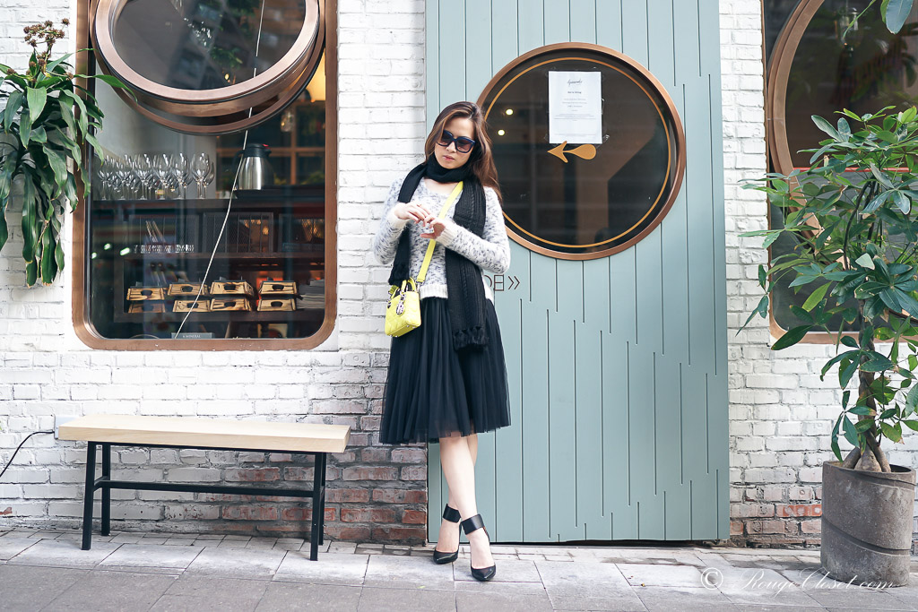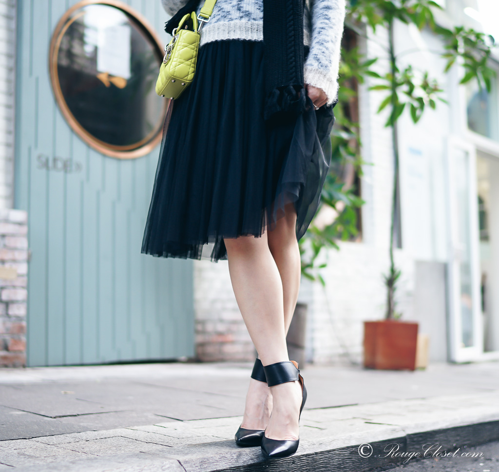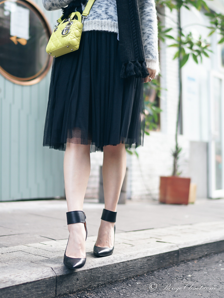 If you are following me, you probably know that I love to play around my style with a little contrast. Here you can see I mix the girly feminine tulle skirt with the neutral, boxful sweater. If you have a chunky knit, style it with the tulle skirt. The more chunky your sweater is, the more interesting you style will be. I have talked about tulle skirt before. I love it can be styled up or down and can easily create head turning style. You should first start with a basic black midi version. Then, you can get more in different colours and lengths. The good side about tulle skirt is that there are many choices available which are priced very reasonable. So you won’t feel bad to get your hand on it and get more of it. ☺ I selected some of the very nice tulle skirt choices below, together with other similar items you need to create this style. Enjoy and pick a nice one!