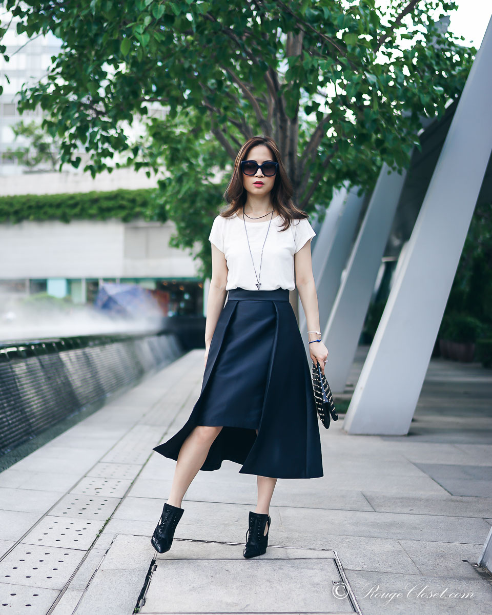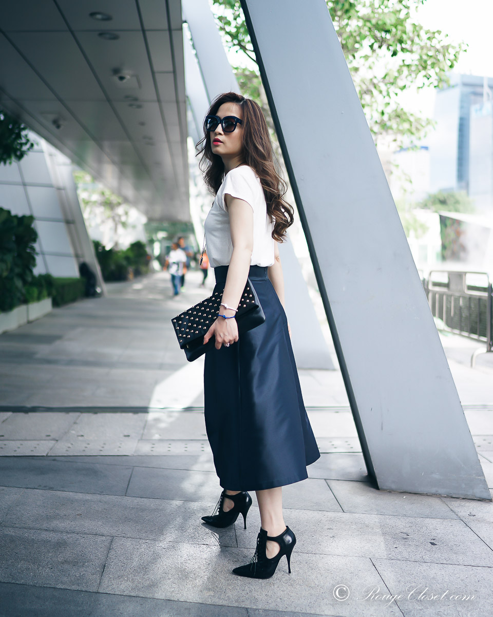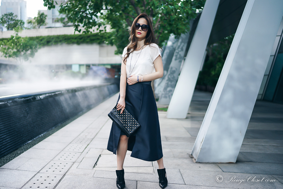 ARIS is a contemporary Australian brand. Their collection are created for business women who are not satisfied with traditional boring office wear. They made professional clothes fashionable. It’s fun to stye their collection up and down while mixing with your other wardrobe staples. Do you still remember I share my pictures in their halter dress before? I hope you love me styling with this midi skirt as well. ❤