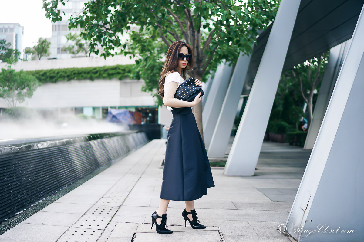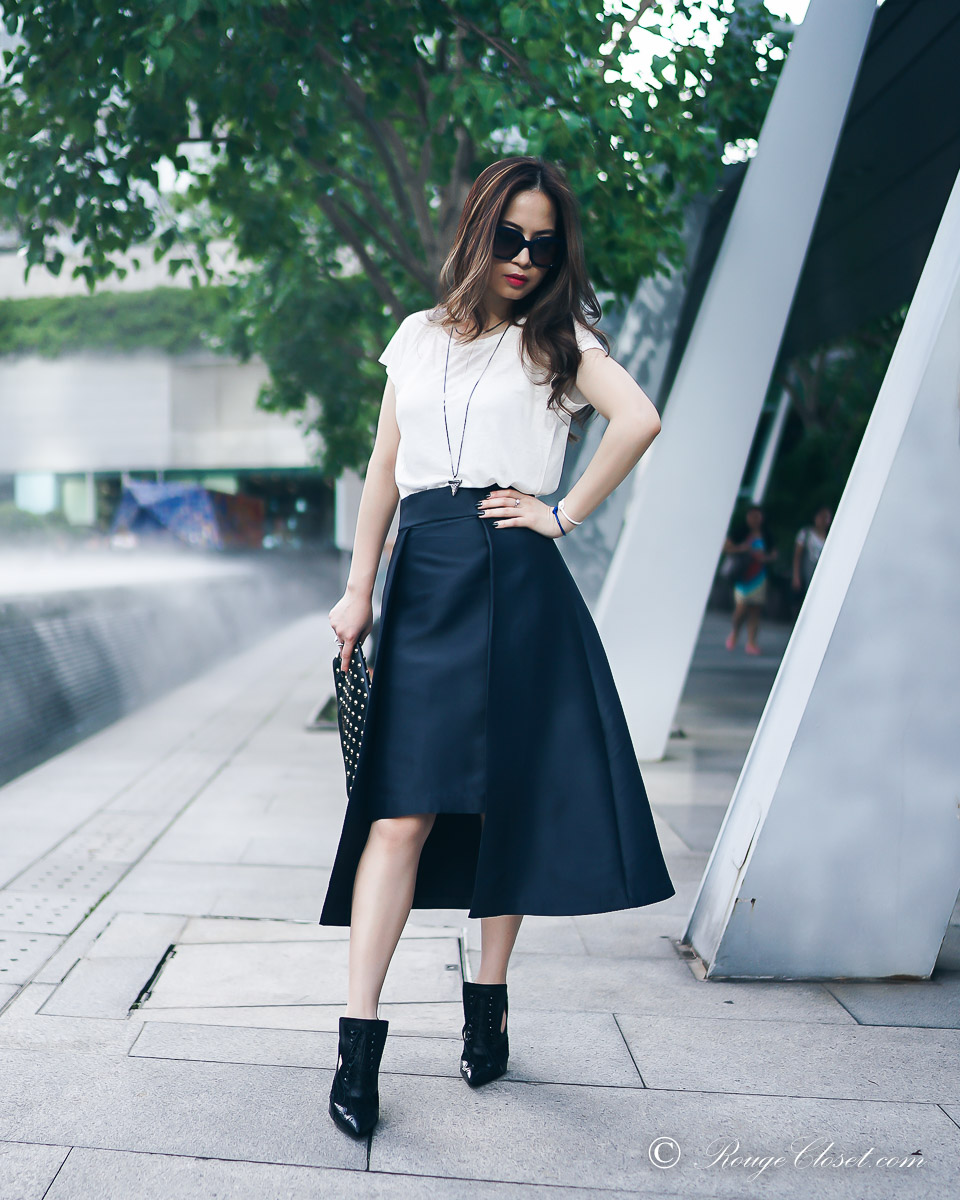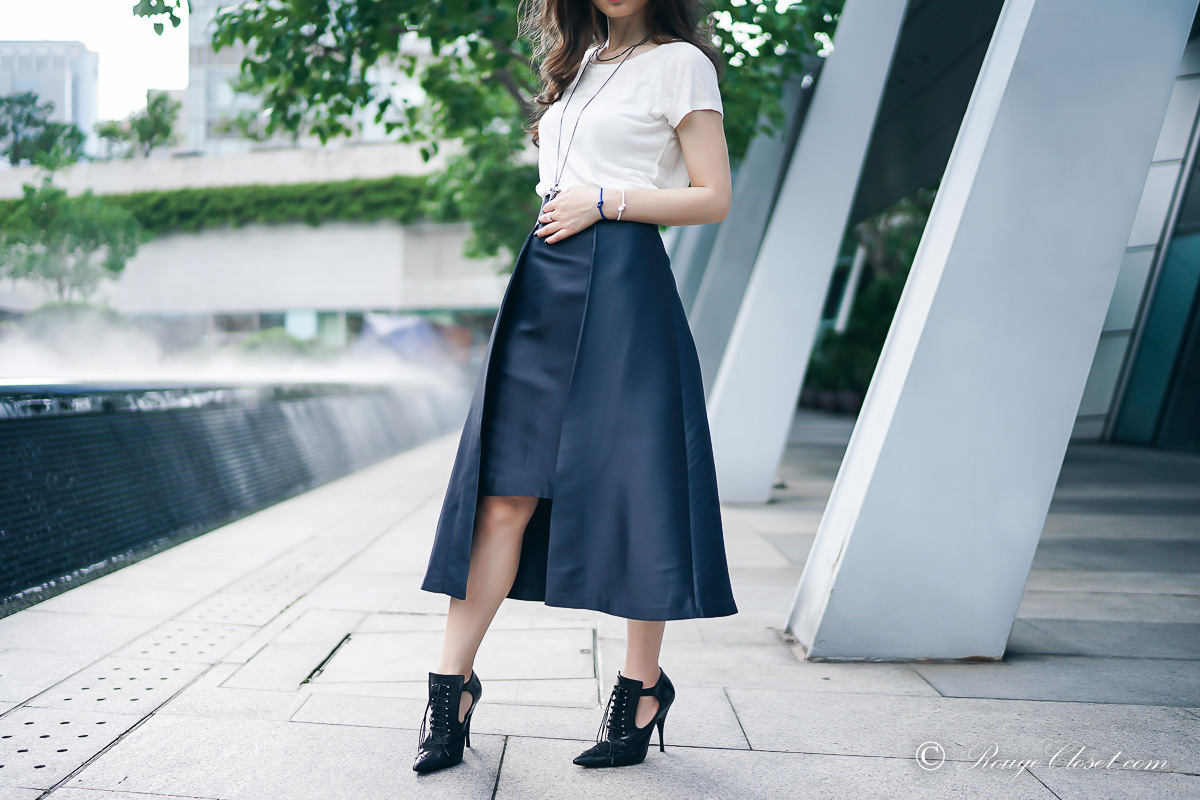 ARIS is a contemporary Australian brand. Their collection are created for business women who are not satisfied with traditional boring office wear. They made professional clothes fashionable. It’s fun to stye their collection up and down while mixing with your other wardrobe staples. Do you still remember I share my pictures in their halter dress before? I hope you love me styling with this midi skirt as well. ❤